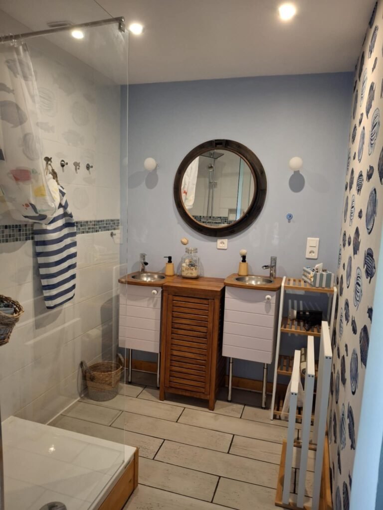 La suite SAKANA est composée de 2 chambres. La salle d’eau-wc est située entre les 2 chambres.